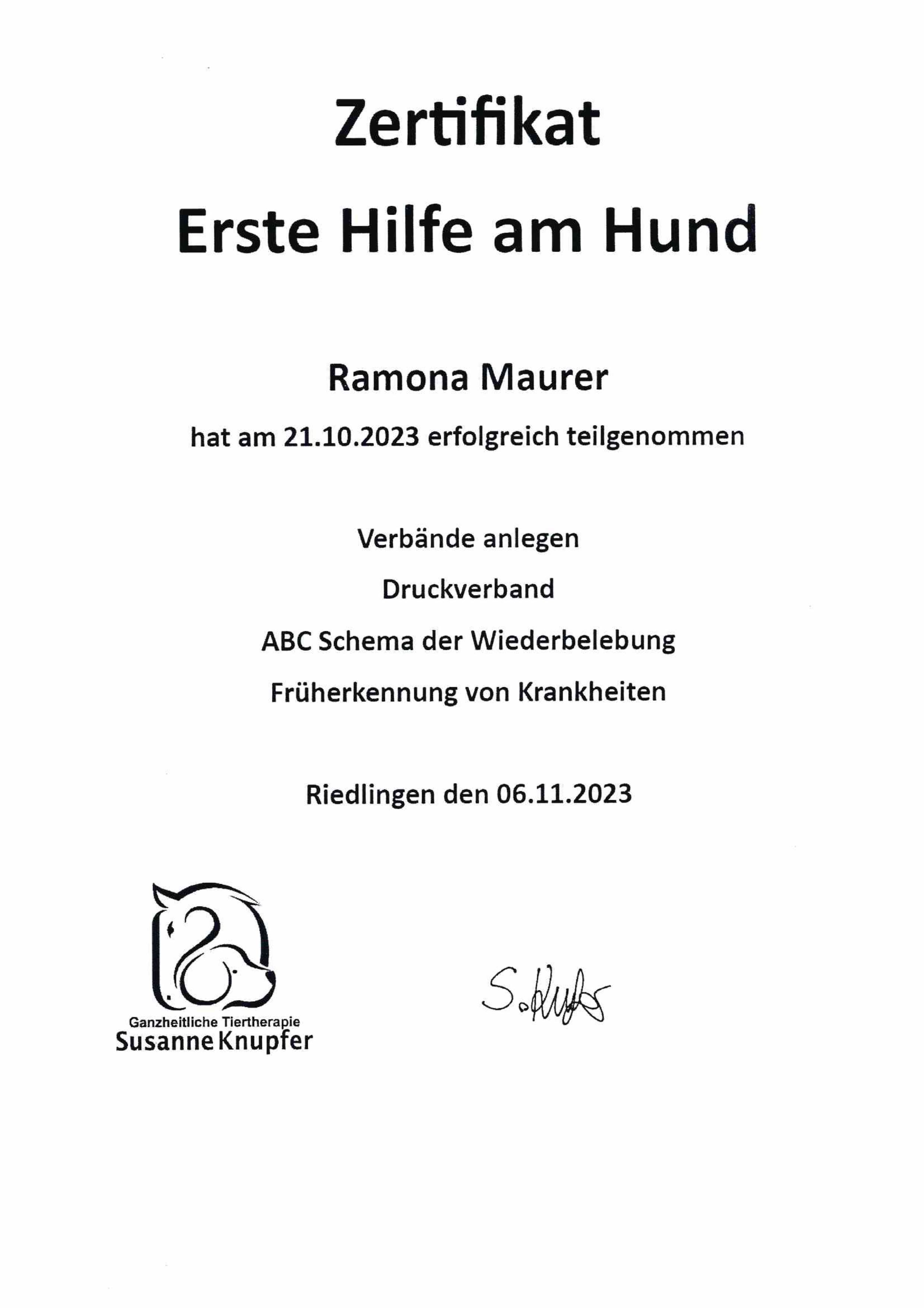2023 Erste Hilfe am Hund bei Ganzheitliche Tiertherapie Susanne Knupfer in Mosbach
