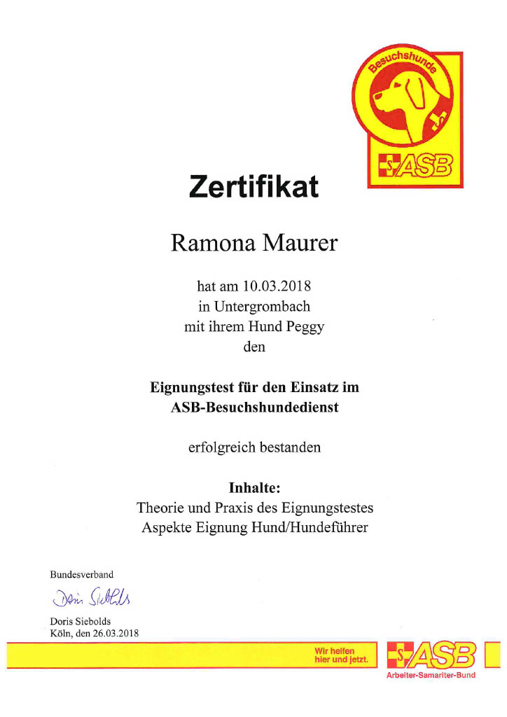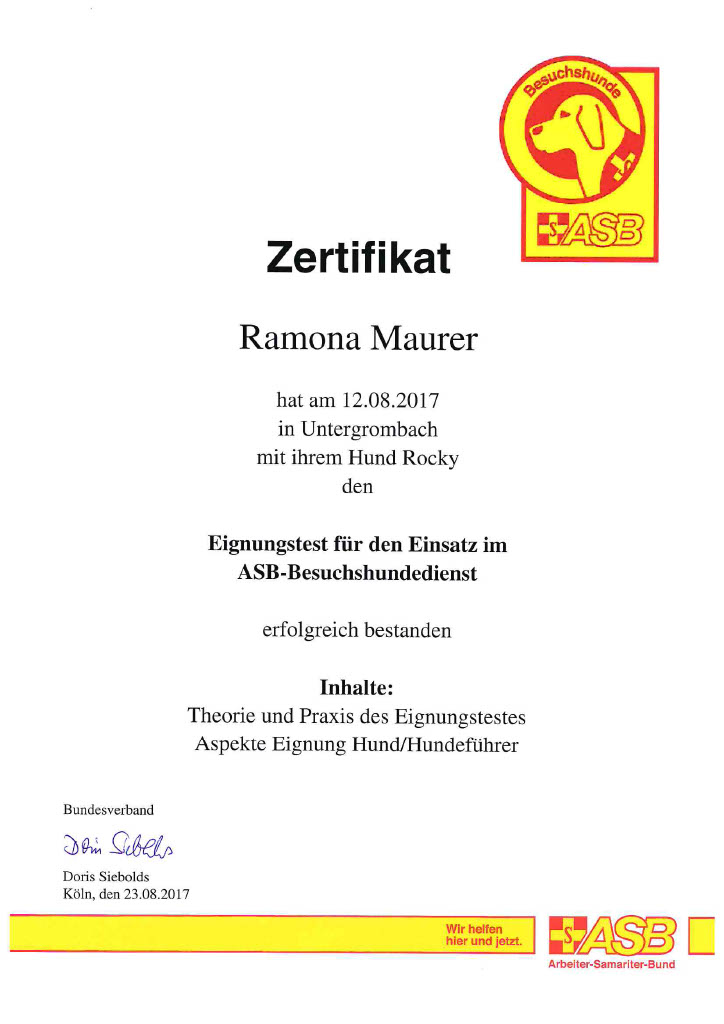 2018 Ausbildung Besuchshund beim ASB mit Hündin in Karlsruhe