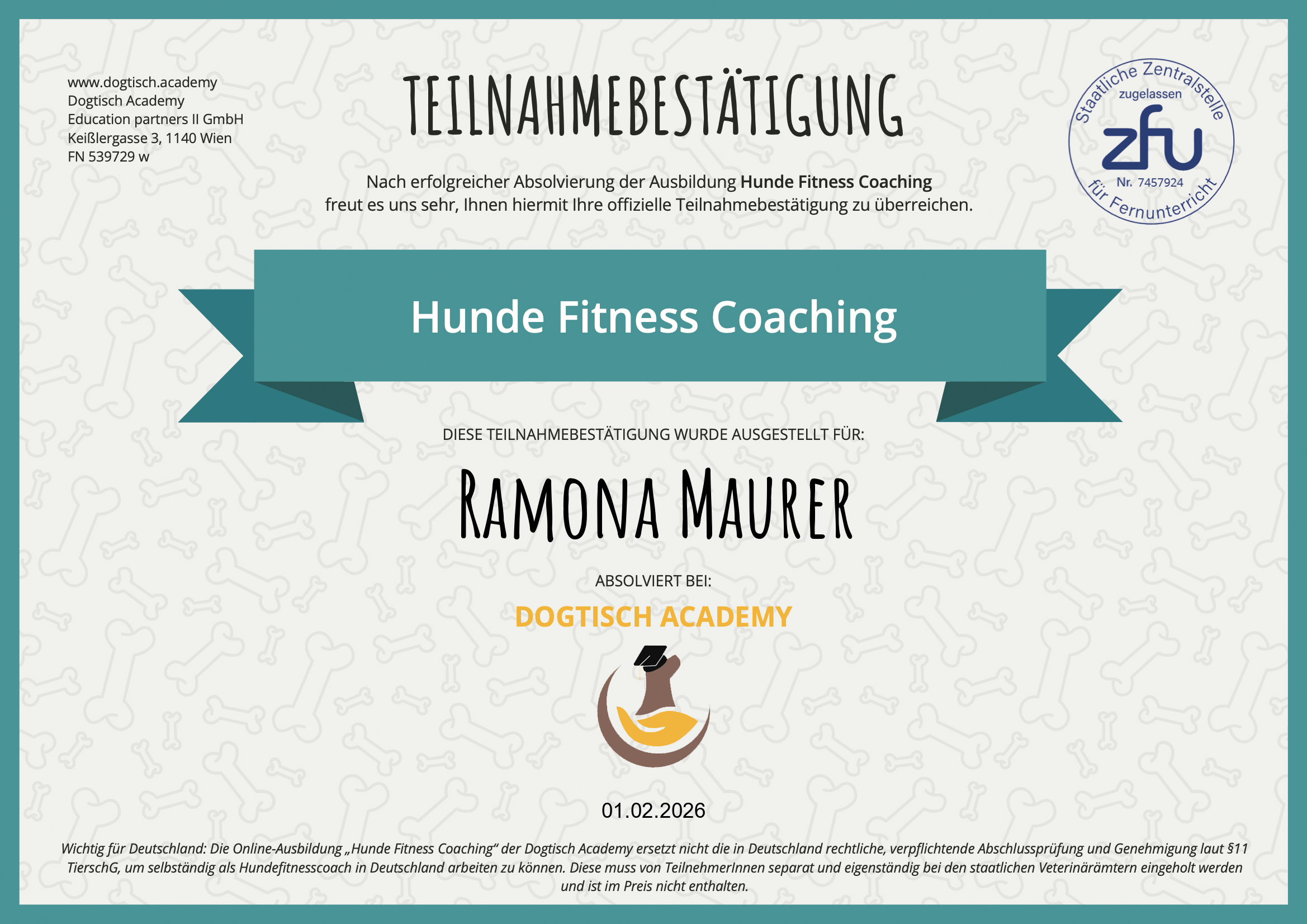 2026 Fitnesscoach für Hunde bei Dogtisch Academy